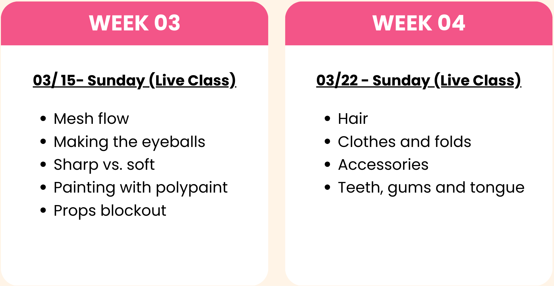 Learn directly from me (Leticia Gillett) in this exclusive live class focused on 3D stylized portraits.Â